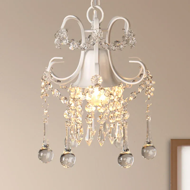 1-flammige Kristallkugel-Pendelleuchte, verzierte Metall-Hängeleuchte in Weiß für Restaurant