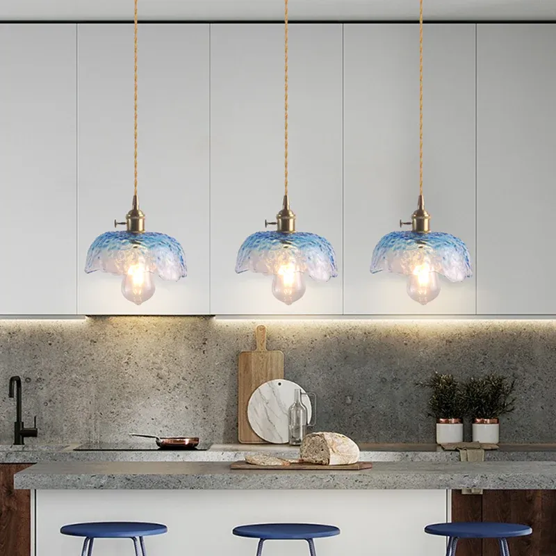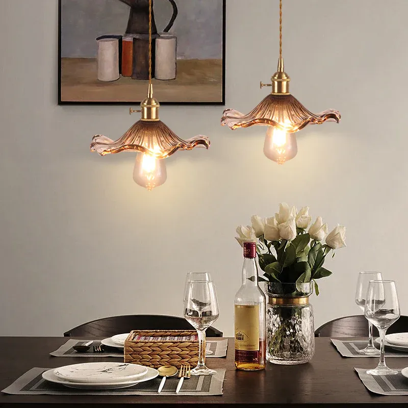 1-Glühbirnen-Hängeleuchte im Retro-Stil, florale, strukturierte Glas-Pendelleuchte für das Esszimmer