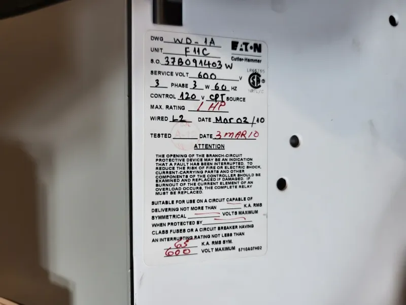 **Fits 2100 MCC Frame Circuit Breaker Maker: Eaton Model: HMCP Voltage: 600V Amps: 3 amps Poles: 3 Ground Fault Relay Maker: Eaton Model: D64RPB30 Overload relay: 24-240 Vac/dc Motor Saver Electronic Overload Relay</ Nur eingeloggte Kunden, die dieses Produkt gekauft haben, können eine Bewertung abgeben.