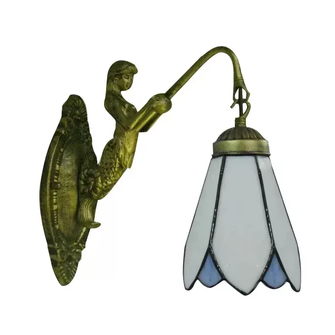 1-Kopf-Kegel-Wandleuchte, Tiffany-Wandleuchte aus weißem/blauem Glas, mit Meerjungfrau-Rückplatte