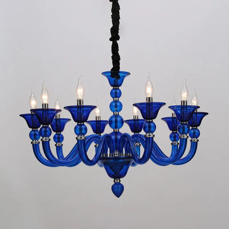 10 Glühbirnen Kerze Kronleuchter Pendelleuchte Traditionelle Beige/Lila/Blau Glas Hängelampe Kit