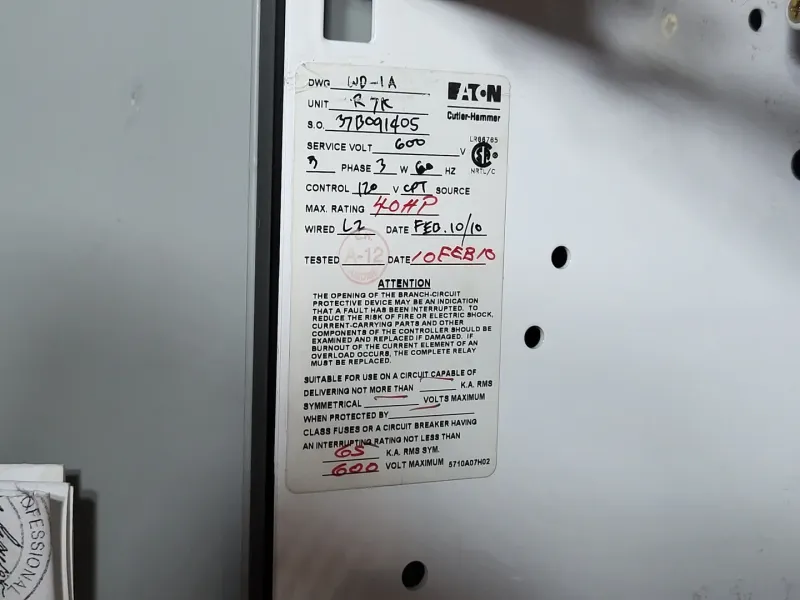 **Fits 2100 MCC Frame Circuit Breaker Maker: Eaton Model: HMCP Voltage: 600V Amps: 100 amps Poles: 3 Ground Fault Relay Maker: Eaton Model: D64RPB30 Overload relay: 24-240 Vac/dc Motor Saver Electronic Overload Relay</stro Nur eingeloggte Kunden, die dieses Produkt gekauft haben, können eine Bewertung abgeben. Kürzlich angesehene Produkte