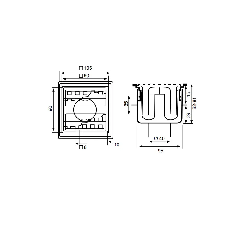 Ablaufgarnitur für Dusche aus ABS mit Edelstahlrost 10×10.