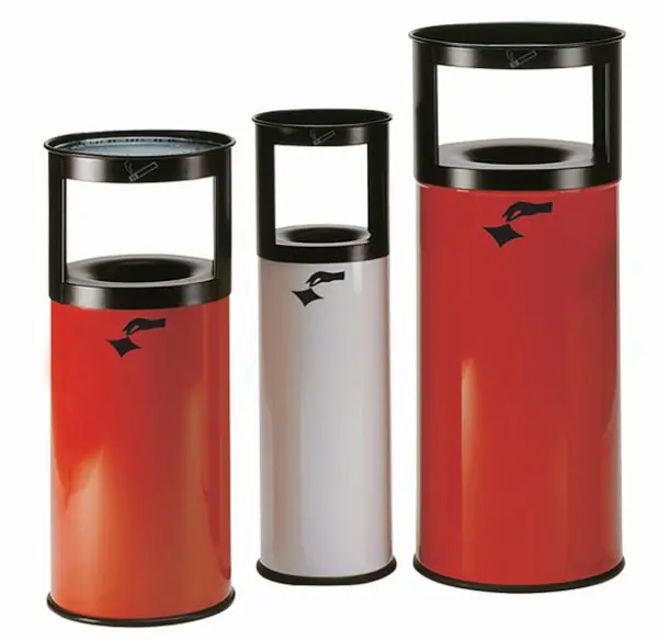 Abfal-Ascher-Vereinigung FLORENZ Weiß, B 250 x T 250 x H 800 mm, 390034, 4260058005532Vereinigung aus Ascher und Abfallbehälter. Der Behälter ist aus beschichtetem Stahlblech. Die besondere Deckelkonstruktion verhindert einen permanenten Sauerstoffaustausch, so dass Feuer und Glut gelöscht werden. Deckel und Boden schwarz matt beschichtet. Einwurf mit Kantenschutz.Technische Daten: