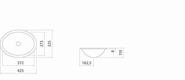 Alape Einbaubecken EB.O425, ohne Hahnloch/ohne Überlauf, Weiß ProShield, 2100100000, 4024718230685Technische Daten:
