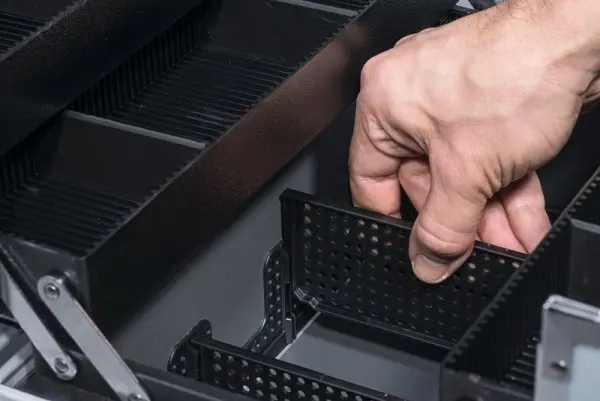 - Nützliche Ablagefächer, die mit dem Deckel aufklappen