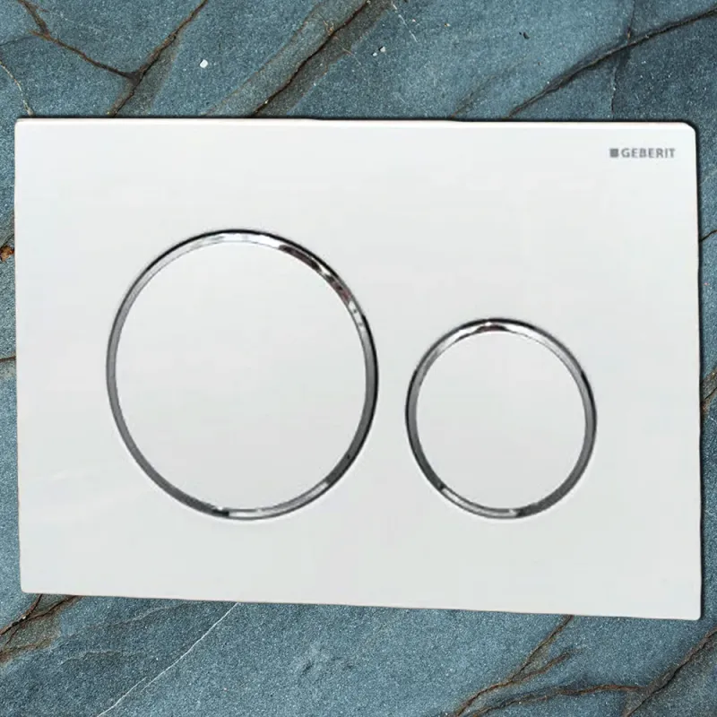 Geberit Sigma 20 Weiß-Chrom-Weiß ist eine WC-Spülplatte, die Schweizer Ingenieurskunst und zeitlose Raffinesse ausdrückt. Gefertigt aus hochwertigem weißem ABS, empfängt die glänzende Oberfläche zwei weiße Tasten, eingefasst von verchromten Ringen, ein Markenzeichen schlichter Eleganz. Die doppelte Wassermenge, jetzt präzise durch zwei Tasten gesteuert, verbindet hydraulische Effizienz mit verantwortungsbewusstem Verbrauch. Für Langlebigkeit konzipiert, verkörpert diese Geberit Platte historischen und modernen Wert sowie einen Charakter, der klare Linien und minimale Wartung bevorzugt. Begrenzte Verfügbarkeit, gedacht für hochwertige Projekte und Sammler, die die Authentizität der Marke schätzen.