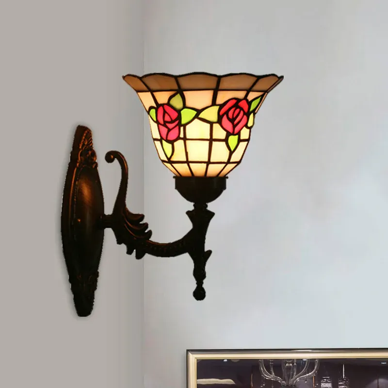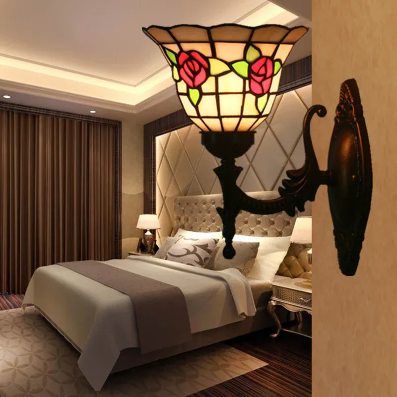 Ausgestellte Wandleuchte, 1 Glühbirne, Buntglas, Wandleuchte im Tiffany-Stil in Rot/Rosa/Blau ✓ Passt für Birnen mit E27- und E14-Fassungen ✓ Bis zu 3 Meter Reichweite mit Teleskopstange ► Glühbirnen sicher aus der Ferne tauschen
