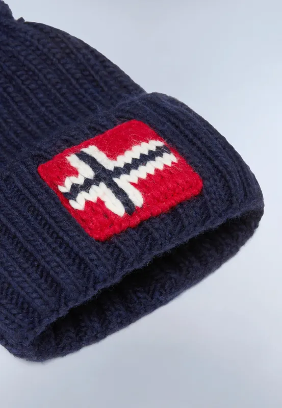 Die Beanie Semiury besteht aus einer Wollmischung mit Rippstrick und hält daher besonders lau. Das ikonische norwegische Flaggenlogo auf der Vorderseite macht die Pudelmütze zu einem Hingucker.