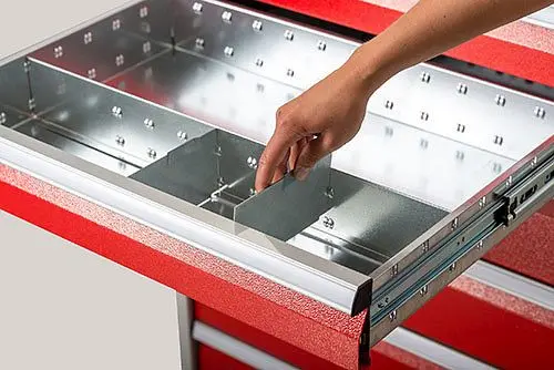 Bedrunka+Hirth Schubladeneinsatz, Serie T500-6, Mittelfachschienen, mit 4 Trennwänden, 168-144A, 4050413004641Schubladeneinteilung R 24-16 mit Metalleinteilung für Front 200 mm, Abmessungen in mm (BxT): 600 x 400Produktbeschreibung:
