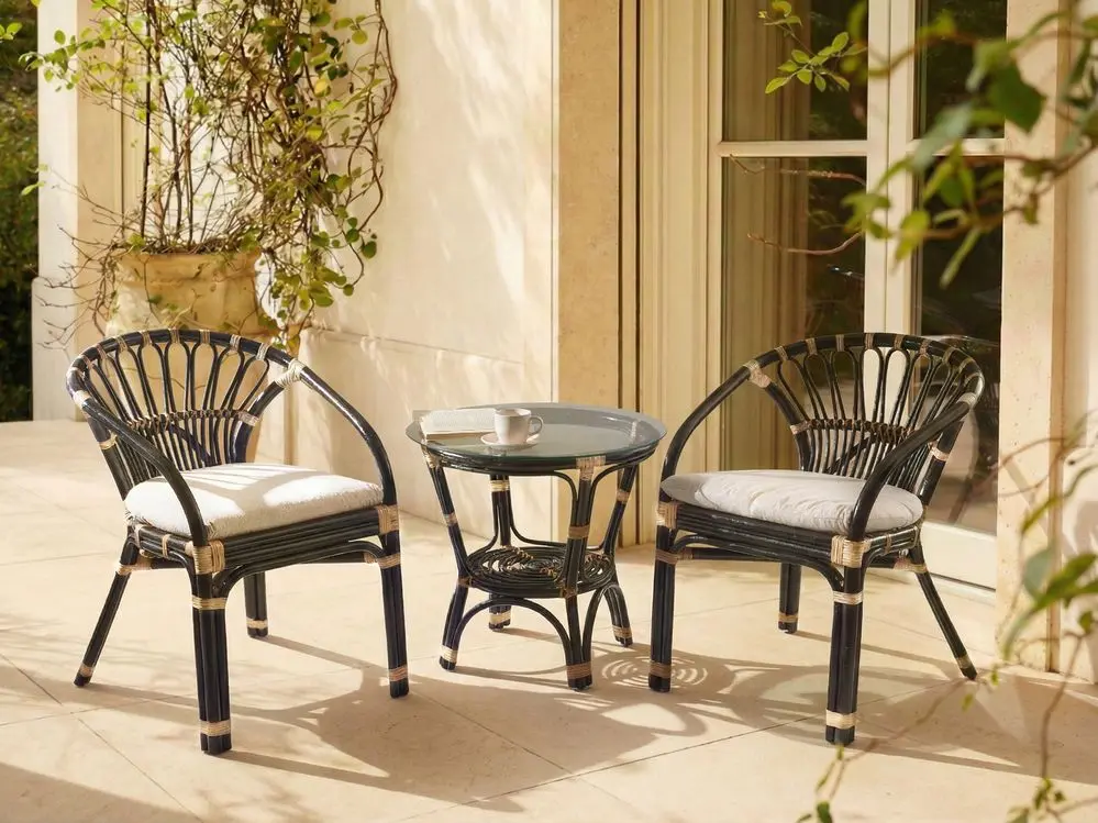Setzen Sie auf zwei elegante Rattanstühle und einen runden Tisch, die gemeinsam ein harmonisches Gesamtbild in Ihrem Außenbereich kreieren. Die Stühle sind mit weichen Sitzkissen ausgestattet, die durch ihre Bindebänder sicher an Ort und Stelle gehalten werden und für ein komfortables Sitzerlebnis sorgen. Zudem sind die Bezüge der Kissen abnehmbar und waschbar. Der Kaffeetisch besticht durch seine stabile Hartglasplatte, die mit Saugnäpfen fest fixiert ist. Zudem überzeugen die Rattanmöbel durch ihre natürliche Witterungsbeständigkeit, Langlebigkeit und handwerkliche Schönheit.
