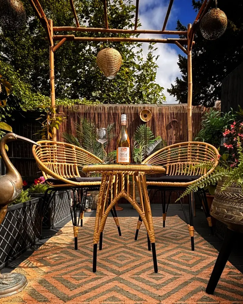 2 Seater Outdoor Set Create a cosy relaxation spot on your balcony thanks to this boho-inspired bistro set. The pieces of furniture are made of faux rattan, which, besides its chic look, is exceptionally low-maintenance. The construction is based on sturdy powder-coated metal legs with protective leg caps that will prevent your floor from scratching. The wide seats of the chairs are equipped with water-resistant cushions, so you can comfortably wind down wit