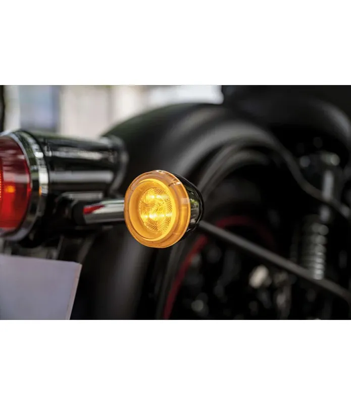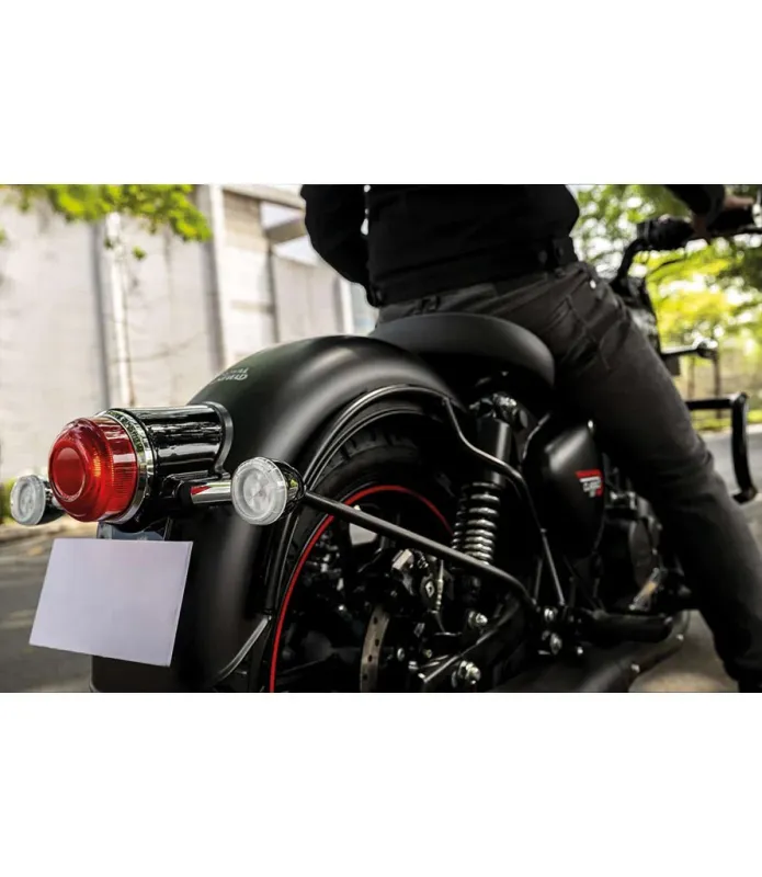 Das Set aus schwarzen LED Positionsanzeigen für Royal Enfield Bewährt 350 und Bullet 350 garantiert maximale Sichtbarkeit dank der hocheffizienten LED-Technologie und verleiht deinem Motorrad einen markanten und modernen Stil.