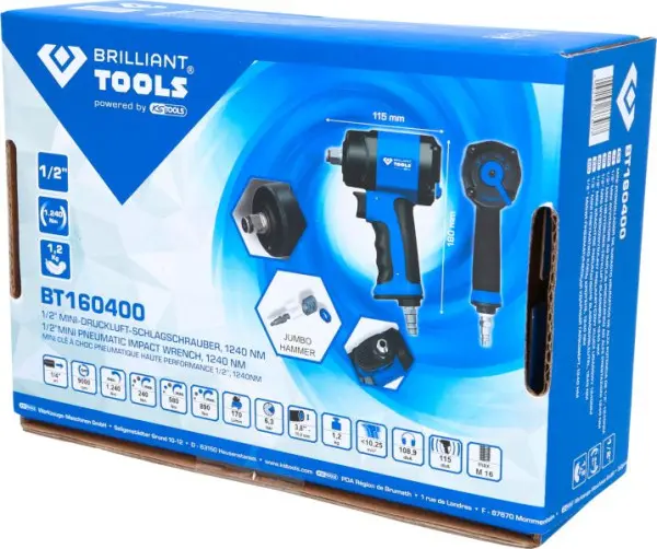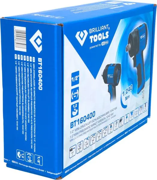 Brilliant Tools 1/2″ Mini-Druckluft-Schlagschrauber, 1.240 Nm, BT160400, 4042146863077