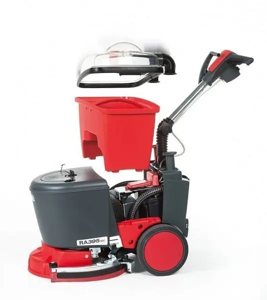 Cleanfix Scheuersaugmaschine RA395 IBC, 395.000Die ideale, handliche Scheuersaugmaschine für alle Hartböden mittlerer Grösse in Gewerbe, Industrie und Gastronomie. Gründliche Reinigung mittels Tellerbürste. Abhebbare Sauglippen saugen den losgelösten Schmutz auf. Für körpergerechtes Tätig sein lässt sich der Teleskopbügel manuell verstellen.Technische Daten: