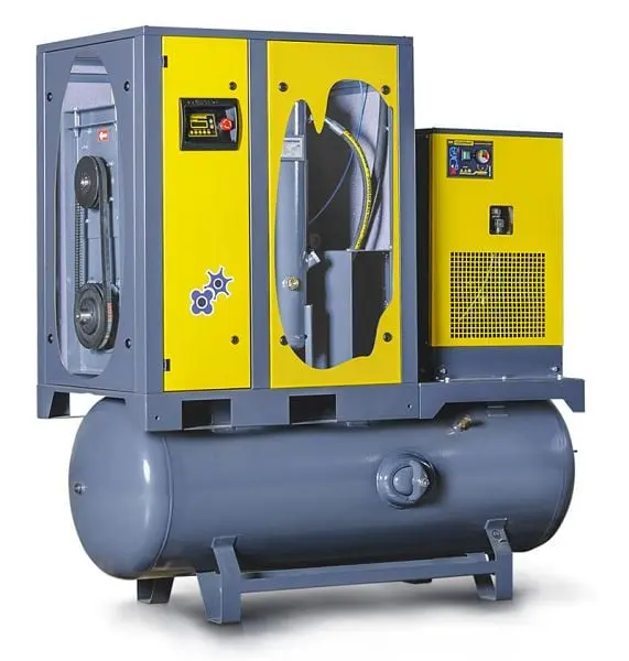 Comprag Schraubenkompressor FRD1808-500, montiert auf liegendem Behälter 500 l und mit Kältetrockner, bis 8 bar, 11410506Comprag F-Serie Kompressoren sind öleingespritzte Schraubenverdichter, die für eine kontinuierliche und effiziente Produktion von Druckluft ausgelegt sind. Comprag F-Serie Kompressoren sind platzsparend und leicht in der Bedienung.Eigenschaften