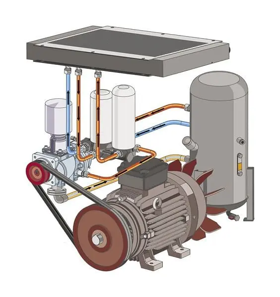 - Durch das effektive Ölabscheidesystem ist ein geringer Ölanteil in der Druckluft von maximal 3 mg/m3 möglich.