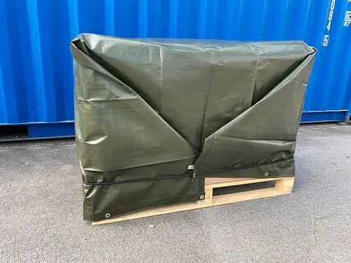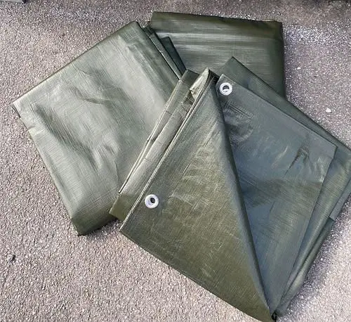 DENIOS Gewebeplane aus Polyethylen mit Alukleinformatumösen, olivgrün, beidseitig lakleinformatert, 180 g/m², 2 x 3 m, 303370
