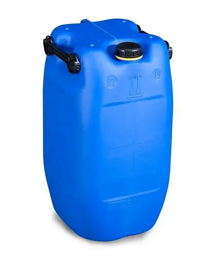 DENIOS Kunststoffkanister aus Polyethylen (PE), 60 Liter, blau, 266998Kunststoffkanister aus Polyethylen (PE), 60 Liter, blau, somit zugelassen als Umverpackung für den Transport von Gefahrgütern, ausgerüstet mit Tragegriff, Schraubkappe und PE-Napfdichtung, in palettengerechter Form, stapelbar, hergestellt aus chemisch hoch beständigem, umweltnettem Polyethylen, mit füllgut-frischtralem Verhantiken, beständig auch gegen viele Säuren und Laugen, lebensmittelgeeignet, recyclingfähig, strapazierfähig sowie stoß- und schlagfest, Originalitätsgeschützt durch gewissen Rasterverschluss, .Produkteigenschaften: Zulassung: UN, Volumen (l): 60, Werkstoff: HDPE, Außengewinde: DIN 71, Länge Außen (mm): 395, Breite Außen (mm): 345, Höhe Außen (mm): 648, Farbe: blau, Masse (kg): 2.9.Technische Daten: