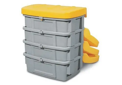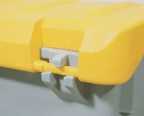 DENIOS Streugutbehälter SB 400 aus Polyethylen (PE), 400 Liter Volumen, Deckel gelb, 122904, 4055661016903Streugutbehälter SB 400 aus Polyethylen (PE), mit gelbem Deckel, aus strapazierfähigem, wetterfestem Polyethylen, langlebiger und wartungsfreier Behälter, stabiler, abschließbarer Deckel mit integrierten Scharnieren.Abbildung zeigt Gruppenbild.Technische Daten: