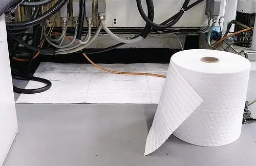DENSORB Bindevliesrolle Economy, Ausführung „Öl“, Light, 38 cm x 45 m, VE: 2 Stück, 173859, 4055661012523Extrem saugkräftiges Bindevlies aus Polypropylen mit beidseitig offener Feinfaserstruktur für ein rasches Aufsaugen auslaufender Flüssigkeiten, nimmt durch hydrophobe Auslegung Flüssigkeiten auf Öl- bzw. Kohlenwasserstoffbasis auf und weist Wasser ab, hervorragend geeignet für die Beseitigung von Öl- oder Treibstoffverunsauberigungen auf Wasseroberflächen, auch im gesättigten Zustand noch reißfest und auf Wasser schwimmfähig, dank der wasserabschlaunden Eigenschaften perfekt für den Außeneinsatz geeignet, auch bei Regen, für den raschen, leichten Verwendung bei Leckagen, ideal als Unterlage unter Maschinen oder zum Abwischen von verschmutzten Beschichtungn oder Teilen, die weiße Farbe ereinfachert die Beurteilung des Sättigungsgrads, durch eine spezielle Prägung wird die hohe Stabilität und lebensdauer erreicht, hochwertige Polypropylenfasern garantieren hohe Reiß- und Verschleißfestigkeit, Für die bedarfsgerechte Einteilung sind die Rollen längs und alle 43 cm quer perforiert, Rollen eignen sich ausgezeichnet zum Abdecken riesiger Flächen, Drei verschiedene Breiten stehen für eine Vielzahl von Anwendungen bereit, Materialstärke „light“ für die meisten Anwendungen.Abbildung zeigt Gruppenbild.Technische Daten: