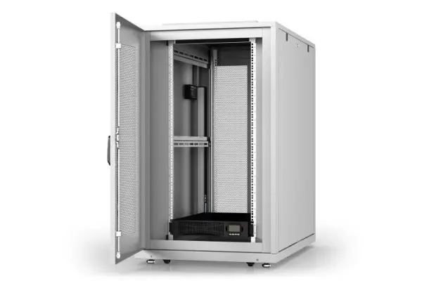 - Der 26HE-Serverschrank bietet die Sicherheitart IP20, Maße: 600 x 1000 x 1340 mm (BxTxH)