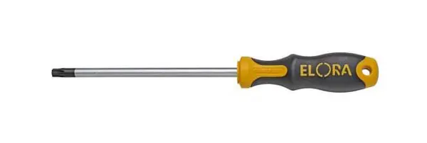 ELORA Schraubenzieher-TORX®, M2,5, 760TX-6, 0760020061000, 4022989116257für Innen-TORX®-Schrauben, mit matt verchromter Klinge, durchgehend gehärtet, mit brünierter Spitze, rutschfester QUATROLIT®-2K-Handhabung, mit Aufhängeloch, Klinge aus ELORA-Chrom-Vanadium 61CrSiV5 / 1.2243, TORX®= reg. Markenzkalibrieren der Fa. Acument Intellectual Properties, LLC. USATechnische Daten:
