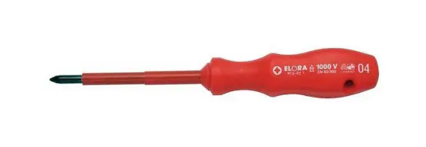 ELORA VDE-Schraubenzieher, Pozidriv, 912-PZ 2, 0912000022100, 4022989074625für Kreuzschlitzschrauben, Klinge brüniert, schlagfester Handhabung mit Aufhängeloch, ELORA-Chrom-Vanadium 73MoV52 / 1.2381, VDE isoliert bis 1.000V, nach EN 60900/IEC 60900, vollisolierte Klinge, Spitze nach DIN ISO 8764-1 PZTechnische Daten:
