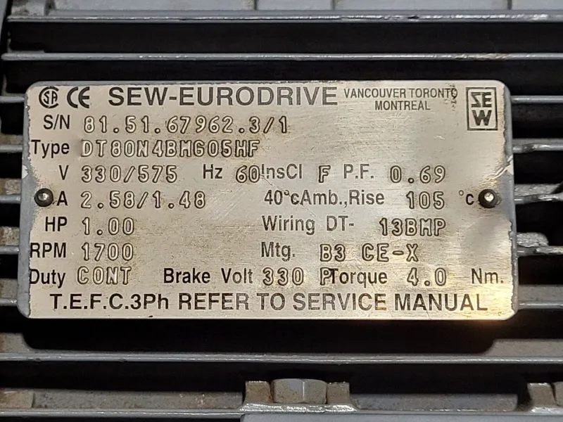 1hp, 330/ , 1700rpm, 3-Ph Electric Motor DT80N4BMG05HF
