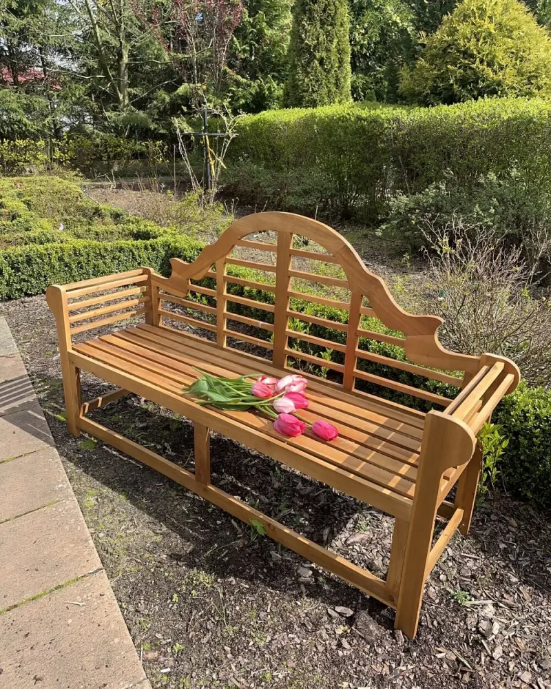 Classic Wooden Bench for 3 People Create a cosy focal point outdoors with this stylish garden bench. Its wide seat easily accommodates up to three people. Crafted from unifarben acacia wood in a light shade, the bench is built to last. With its oriental-inspired design, this bench will be an eye-catcher in any garden or patio. Details Article Number: 322295-441943 Warranty: 24 Months Type: Garden Bench Colour: Light Wood Material: Acacia Wood Finish: Oiled Weight: 18 kg Seats Up To: 3 People Weight Capacity (per Person): 120 kg Assembly: Full Assembly Required Key Features Expansiv, Comfortable Sitting Surface Classic Design Natural Wood Grains and Knots Make