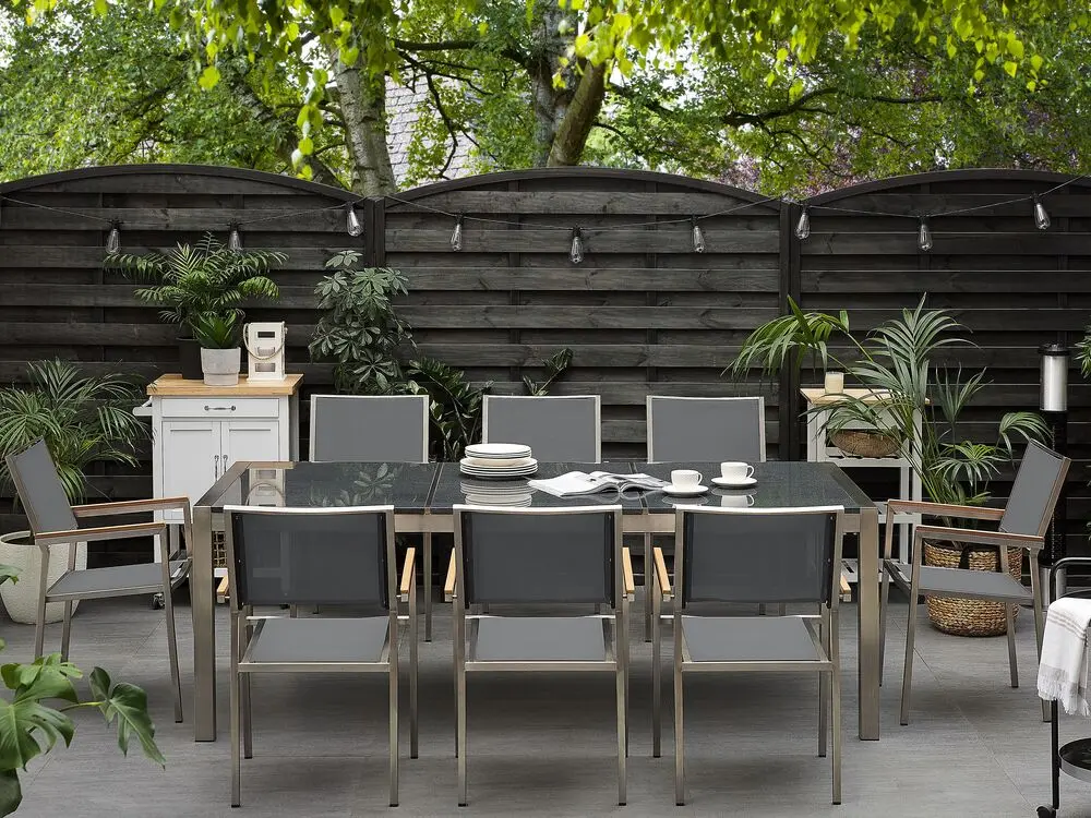 Gartenmöbel Set 8-Sitzer GROSSETO Dreifachplatte Granit Polierter