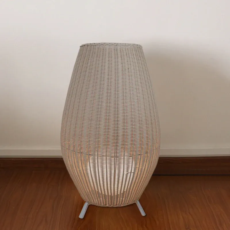 Geflochtene ovale Stehleuchte aus asiatischem Rattan in Beige/Braun mit kugelförmigem