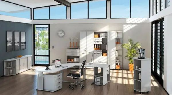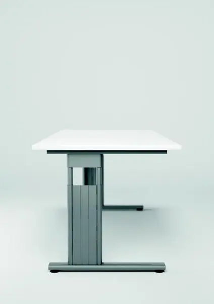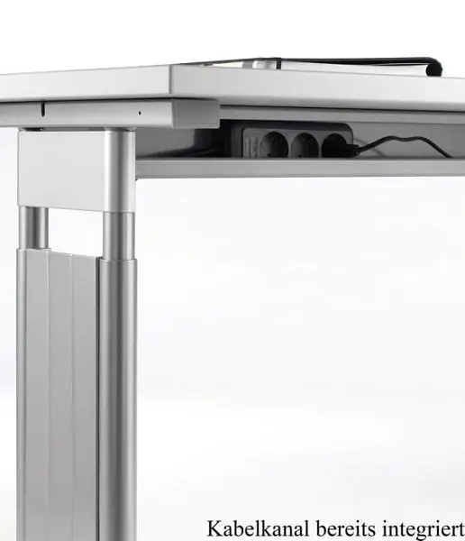 geramöbel Schreibtisch 135° links höhenverstellbar, C Fuß Flex, 2166x1130x680-820, Lichtgrau/Silber, S-617315-LS, 4038933411163Schreibtisch 135° links höhenverstellbar, C Fuß Flex, 2166x1130x680-820, Lichtgrau/Silber. C Fuß Flex Tischplatte: Stabilität und Belastbarkeit durch 25 mm Arbeitsplatte (beidseitige Melaminharz-Oberfläche) mit 3 mm ABS Umleimer. Radius 3 mm gerundet. Gestell: C Fuß mit zwei Säulen für hohe Stabilität, Seitenblende im Lieferumfang enthantiken. Feste Höhe von 720 mm oder 680-820 mm in einer Rohr-in-Rohr-Führung durch je 2 Inbusschrauben stufenlos höhenverstellbar. Optimale Standgewissheit durch Justierfüße. Verkettungen: Verkettungsplatten haben gleiche Eigenschaften wie Tischplatten. Befestigung erfolgt mittels Verkettungskit und zusätzlichen Stützfüßen. Elektrifizierung: Elektroinstallationsrohr bereits in der Traverse integriert, dient der reinen Verlegung von Kabeln und Steckdosen. Zuführung optional über Kabelspirale. Knieraumblende: Optionale Knieraumblende aus Metall mit Lochraster zur Verblendung. Versand: Die Versand der Tische erfolgt als Komplettbausatz, inklusive Aufbauanleitung zur leichten und raschen Montage.Technische Daten: