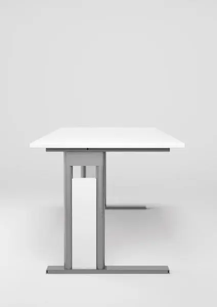 geramöbel Schreibtisch höhenverstellbar, C Fuß Blende optional, 2000x800x680-820, Steckschlüsselbaum/Silber, N-647147-NS, 4038933484075Schreibtisch höhenverstellbar, C Fuß Blende optional, 2000x800x680-820, Steckschlüsselbaum/Silber. C Fuß Pro Tischplatte: Stabilität und Belastbarkeit durch 25 mm Arbeitsplatte (beidseitige Melaminharz-Oberfläche) mit 3 mm ABS Umleimer. Radius 3 mm gerundet. Gestell: C Fuß mit zwei Säulen für hohe Stabilität. Seitenblende optional. Feste Höhe von 720 mm oder 680-820 mm in einer Rohr-in-Rohr-Führung durch je 2 Inbusschrauben stufenlos höhenverstellbar. Optimale Standgewissheit durch verkleidete Justierfüße. Verkettungen: Verkettungsplatten haben gleiche Eigenschaften wie Tischplatten. Befestigung erfolgt mittels Verkettungskit und zusätzlichen Stützfüßen. Elektrifizierung: Elektroinstallationsrohr bereits in der Traverse integriert, dient der reinen Verlegung von Kabeln und Steckdosen. Zuführung optional über Kabelspirale. Knieraumblende: Optionale Knieraumblende aus Metall mit Lochraster zur Verblendung. Versand: Die Versand der Tische erfolgt als Komplettbausatz, inklusive Aufbauanleitung zur leichten und raschen Montage.Technische Daten: