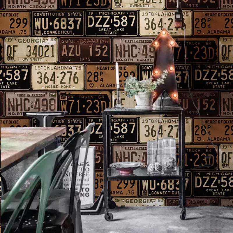 Industrielle Tapete mit europäischen Autokennzeichen und -nummern, 21″ B x
