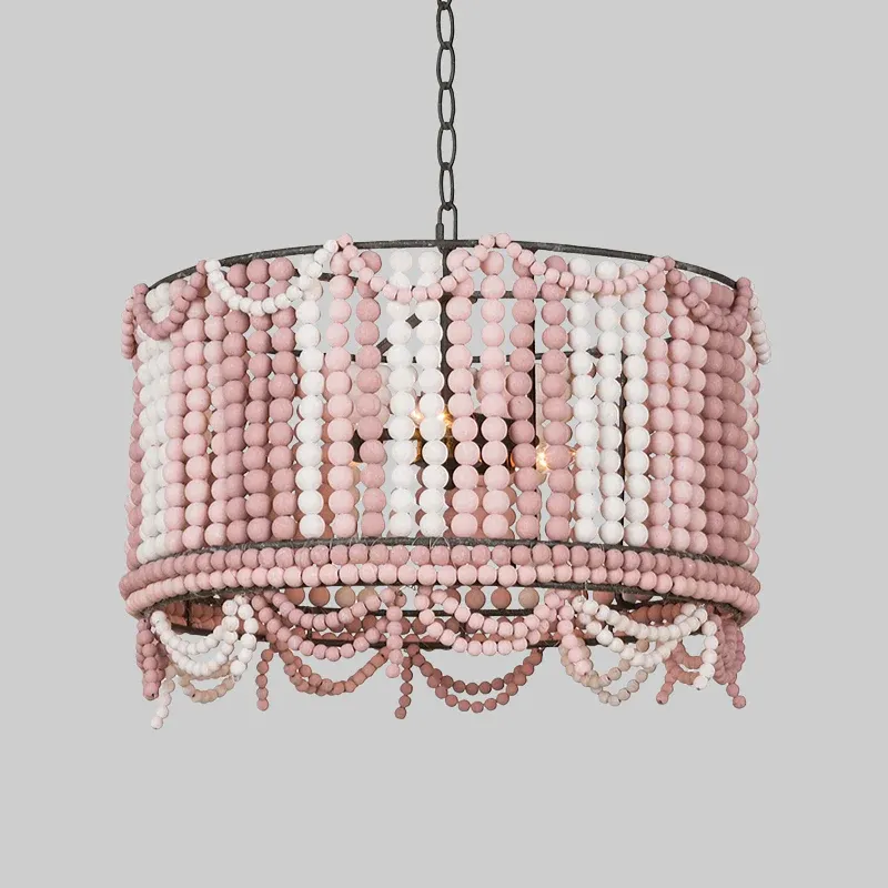 Holz-Trommel-Kronleuchter, Retro-Lampe, 3 Glühbirnen, weiß/rosa/blau, Hängeleuchte mit verstellbarer Kette ✔ Separater Panikknopf auf der Fernbedienung ✔ Erweiterbar mit Glasbruch- und Radarsensoren 🛒 Installieren Sie eine Alarmanlage für mehr Sicherheit
