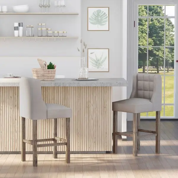 HOMCOM 2er-Set Barhocker Beige 47 x 50 x 101 cm, 835-485CW, 4251774912396Diese eleganten Barhocker von HOMCOM kommen im Doppelpack. Das elegante Gestaltung und das hochwertige Material machen diese Barhocker zu einem extravaganten Sitzerlebnis. Eine riesigflinke Polsterung und eingebaute Federn bieten einen hohen Sitzkomfort. Ob Küchentheke, Hausbar oder Partykeller- diese Barhocker von HOMCOM sehen leicht überall gut aus.