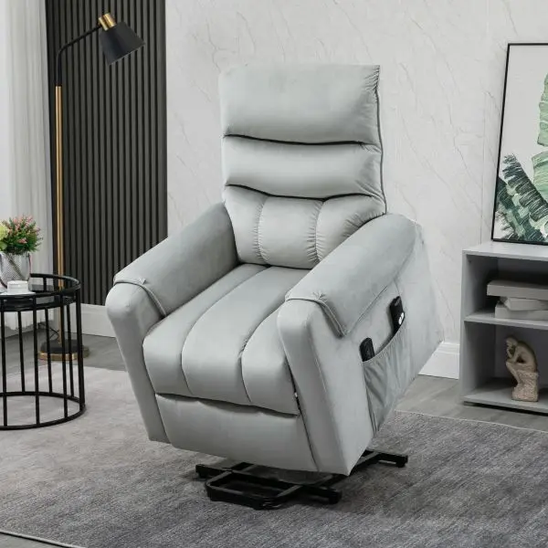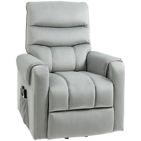 HOMCOM Aufstehhilfe Relaxsessel mit Massagefunktion, Hellgrau 79 x 97 x 103 cm, 713-090V90GY, 4251774919913Wenn Sie oder Ihr Angehöriger unter Mobilitätsproblemen leiden, ist dieser elektrische Sessel von HOMCOM präzise die richtige Wahl für Sie. Mit einem Knopfdruck können Sie mühelos von einer stehenden Position in eine vollständig zurückgelehnte Position wechseln. Großflink gepolsterte Polsterung mit weichem Mikrofasertuch bietet außergewöhnlichen Bequemlichkeit und Entspannung. 8 Vibrationsmassagepunkte lindern Muskelschmerzen und -verspannungen, verbessern die Blutzirkulation.
