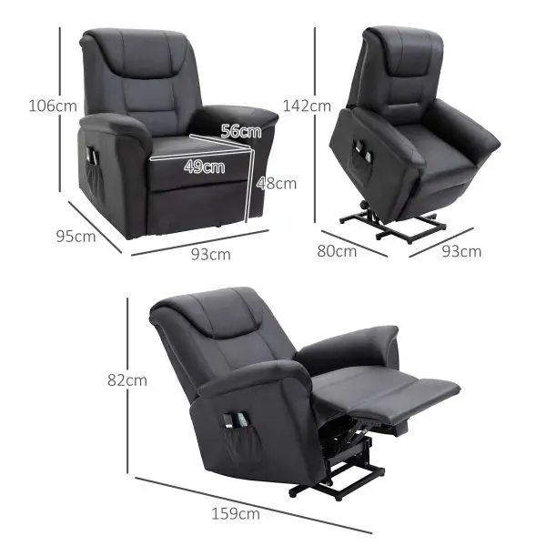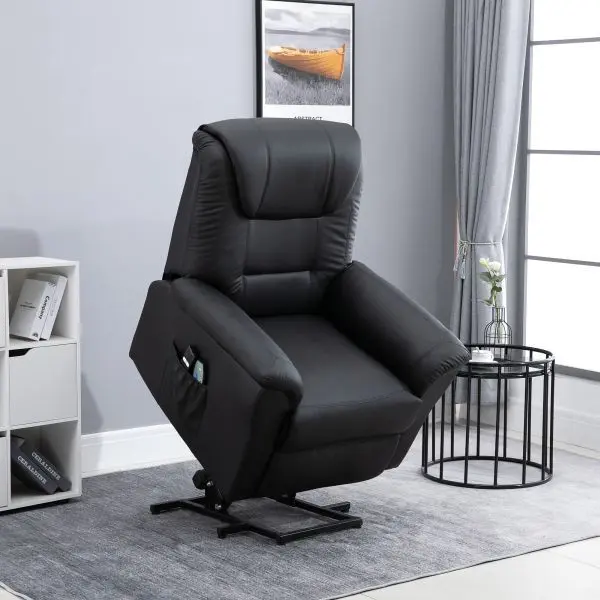 HOMCOM Sessel mit Aufstehhilfe, Verstellbarer Massagesessel Kunstleder Schwarz, 700-120V91BK, 4255633530233Dieser Massagesessel von HOMCOM kommt mit einer eingebauten Aufstehhilfe. Fünf vorprogrammierte Modi und zwei Intensitätsstufen sorgen für eine weiche Sitzfläche und helfen Ihnen, vollkommene Entspannung zu finden. 8 Vibrationsmassagemotoren zielen auf Zonen im oberen und unteren Rücken, den Oberschenkeln und den Waden, die der Benutzer alle auf einmal aktivieren oder einzeln wählen kann.