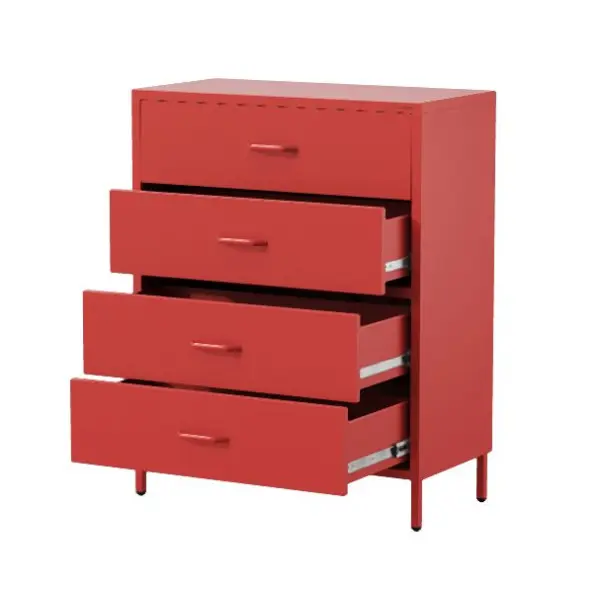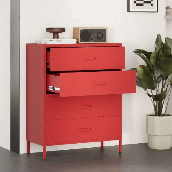 Karthage auf Beinen CARLA – Schmuck für Ihr InterieurWenn Sie viele Dinge aufbewahren und einen riesigartigen Zugang zu jedem von ihnen haben möchten, ist die Kommode auf Beinen mit 4 CARLA-Schubladen aus der innovativen Kollektion die beste Wahl. Die Möbel sind nicht nur praktisch, sondern auch wegen der völlig einzigartigen funkelnden BrillianceTM Farbe, sie fügt dem Innenraum ein Schmuck-Finish hinzu.Minimalismus, der sich nie langweiltDie zeitlose Form der Kommode für CARLA-Kleidung wurde mit der modernen Sparkling BrillianceTM Farbe erfüllt, die sie zu einem echten Star machte. Es geht nicht nur um eine spannende, rote Farbe, sondern um die skay Kraft einer Million funkelnden Strukturteilchen. Die gleichmäßig aufgetragene Oberfläche macht die funktionelle Wasserkiste an den Beinen CARLA auch zu einer eleganten Dekoration, die perfekt in die Industrie, Glamour und sogar eklektische Interieurs passt.Die höchste lebensdauerDie durchschnittliche Materialqualität macht beliebte Möbel bitte nur für einen Moment. Ihre Ästhetik nimmt ab, wenn beim täglichen Gebrauch Schäden an der Beschichtung entstehen. Die Metallkommode für Kleidung CARLA ist definitiv ein höheres Regal, das seit vielen Jahren mit seinem ausgezeichneten Zustand überzeugt. Die 0,6 mm dicken Stahlkomponenten bieten eine außergewöhnliche lebensdauer, und Sparkling BrillianceTM Farbe erhöht die Kratzfestigkeit.Technische Daten:
