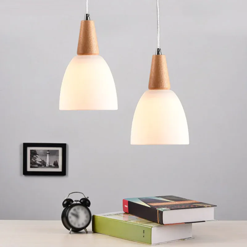 Kegel-Hänge-Pendelleuchten, moderne, einfache weiße Glas-Pendelleuchten für Restaurant ✓ Separater Panikknopf auf der Fernbedienung ✓ Pflegeleicht und unkompliziert ► Installieren Sie eine Alarmanlage für mehr Sicherheit