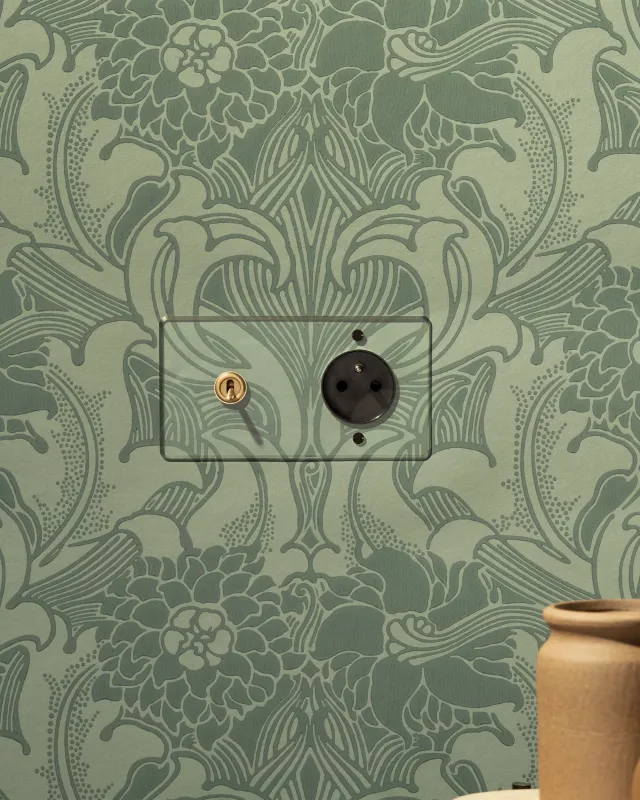 Der äußerst flache Rahmen, der sich bündig an die Wand schmiegt, macht diesen Schalter besonders diskret.