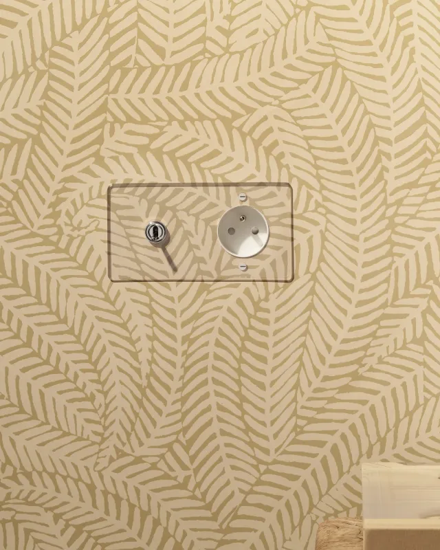 Schlank und schnörkellos: Das ist unser Schalter mit Kipphebel und französischer Steckdose in Zweifachrahmen. Macht sich neben dem Bett oder in der Küche ganz besonders gut.