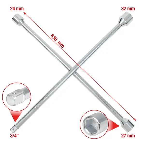 KS Tools Radkreuzschlüssel für LKW, 3/4″x24x27x32mm, 518.1155, 4042146113998