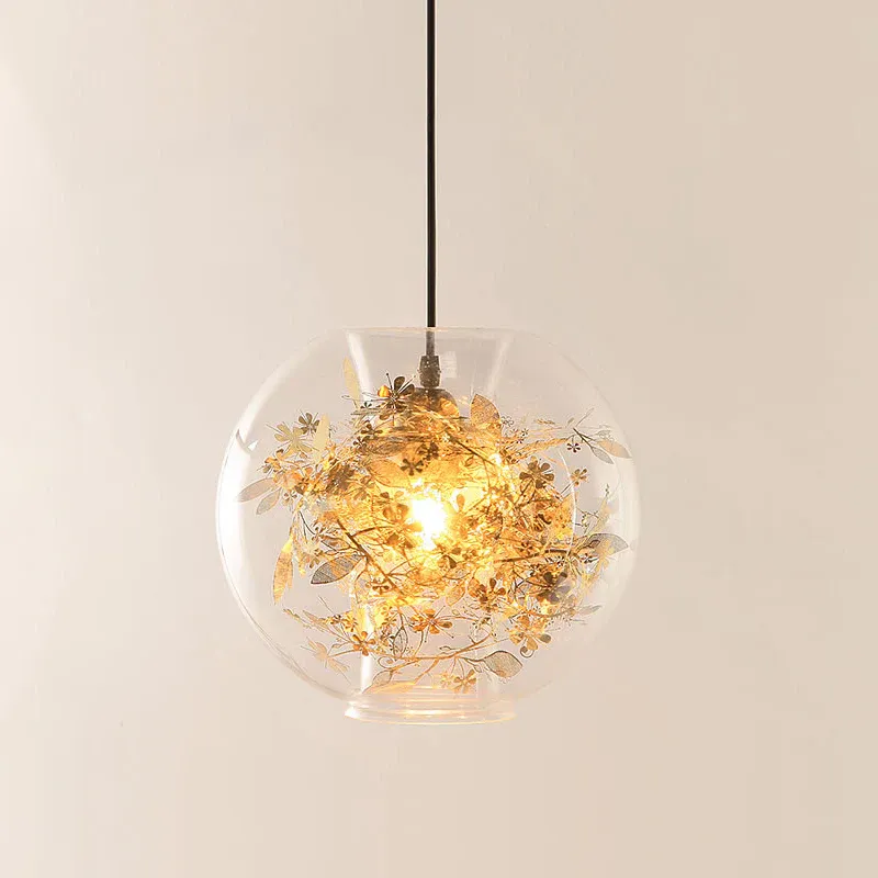 Kugel-Hängeleuchte, moderne Hängelampe aus klarem Glas, 1 Kopf, goldfarben, mit zerbrochenen Blättern im Inneren mit 5t...