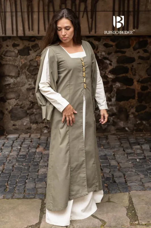 Das Kleid weist ab der Hüfte eine ausgestellte Silhouette auf mit sechs Knöpfen unterhalb des Halsausschnitts. Es hat geschlitzte Ärmel mit Manschetten und einen quadratischen Ausschnitt und lässt sich zart mit einer Vielzahl von Unterkleidern kombinieren. Dieses Kleidungsstück besteht aus 100% Baumwolle für maximalen Komfort.