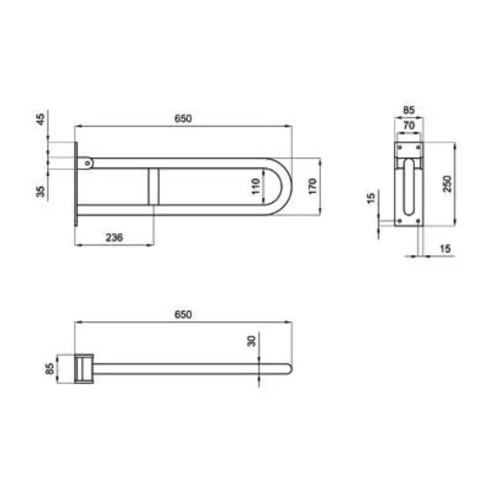 Kippbare Stützstange mit 85 cm Länge, konzipiert für barrierefreie Bäder, in denen Stil und Sicherheit harmonieren. Produziert aus Edelstahl mit pulverbeschichteter Oberfläche, präsentiert sie eine schlichte und zeitgemäße Linie, geeignet für hochwertige Wohnumgebungen. Der Kippmechanismus in Kombination mit dem vertikalen Verriegelungsmechanismus gewährleistet sofortige Stabilität während der Nutzung und eine sichere Position, wenn sie nicht verwendet wird. Entwickelt, um zuverlässigen Halt zu bieten, ohne die Ästhetik des Badezimmers zu beeinträchtigen.