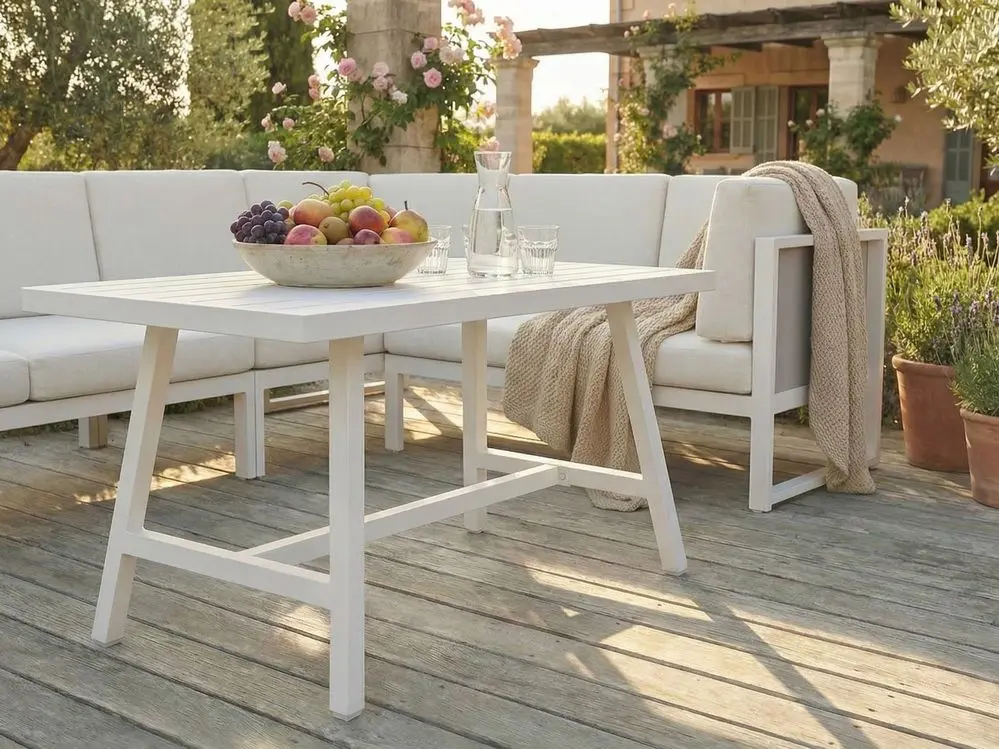 >Modernes, praktisches und vielseitiges Gartenset aus Aluminium in Weiß