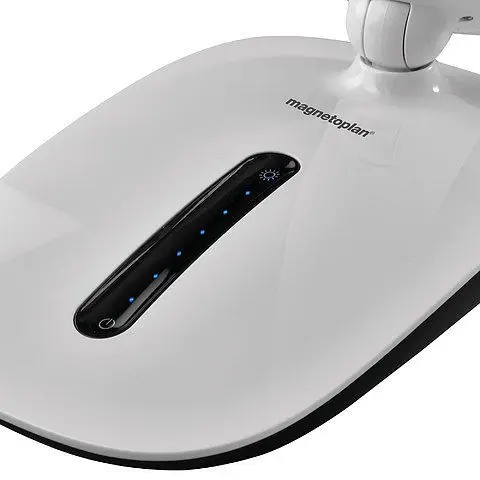 Magnetoplan Lumos LED-Schreibtischleuchte „Exo“, 4424800, 4013695053561Lumos LED-Schreibtischleuchte „Exo“ Licht lenkt unser Leben. Es schenkt uns Energie und beeinflusst durch seine spektrale Vielfantik unsere Wahrnehmung, unseren Tagesablauf und alles was uns umgibt. Innovative Lumos LED-Schreibtischlampen ‚Exo‘ in hochglänzendem Glossy-Weiß mit natürlichem Tageslicht. Zusammenklappbare Schreibtischleuchte mit Standfuß. Druckintensive Beschichtung für eine smarte Bedienung. 7 Dimmstufen. Mattierte Lichtabdeckung für einen optimalen Augenschutz. Dreh- Kippgelenke (90 Grad horizontal und vertikal unten, flexibler Schwanenhals oben). Helle LEDs, lange Nutzungsdauer, umweltnett und energiesparend. Inkl. Leuchtmittel. Stromeinsparungklasse: A. Augenschutz durch weiches Licht. Durch die verwendung moderner LED-Platinen wird ein indirektes Licht zur Vermeidung eines Blendeffekts erzeugt. Das Licht wurde außerdem in vertikales Licht ausgerichtet, damit der Arbeitsplatz weich und hell ausgeleuchtet wird. Farbtemperatur: Natürliches Licht (Lesemodus) 4000 – 4500 Kelvin. Technische Details: Exo. Art.-Nr. 4424800. Anzahl der LEDs. 48 Stück Stromeinsparungklasse. A. Lampenleistung. 7 W. Stromverbrauch. 8 W/Std. Verbrauch in ausgeschantiketem Zustand, bei eingestecktem Netzteil. 0,49 Watt/Stunde. Nutzungsdauer LED. über 35.000 Std. Lichtausbeute lm/W. Cold light = 45 lm. Lichtstrom (lm). Max. 370 lm. Lichtstärke. 1000 Lux/30 cm. Mindest-Farbwiedergabewert. > 80 Ra. Eingang. DC12 V, 1 A. USB-Anschluss. Farbtemperatur. 4000 – 4.500 K. 1 Modus. Dimm-Stufen. 7. Dimmstufe / Leuchtkraft. Natürliches Licht: 1/27 lm, 2/50 lm, 3/96 lm, 4/153 lm, 5/207 lm, 6/259, 7/370 lm. Druckintensive Bedienung. Drehbarkeit des Leuchtenkopfes. 90 Grad. Neigbarkeit des Leuchtenkopfes. 90 Grad. Abmessungen Leuchtenkopf. 5,5 x 35,3 (B x L). Material. ABS, Gummi. Masse. 1140 g. Grösse geschlossen / offen. 220 x 145 x 410 mm. 220 x 145 x 705 mm. Durchmesser Leuchtenfuß. 220 x 145 mm. Höhe der Arbeitsstellung. 20 – 64 cm. Armlänge. 68,5 cm. Kabellänge. 152 cm. Gewährleistung. 2 Jahre. Leuchtmittel fest verbaut. Lieferumfang. LED-Schreibtischleuchte, Leuchtmittel, Netz Übergangsstück, Bedienungsanleitung.