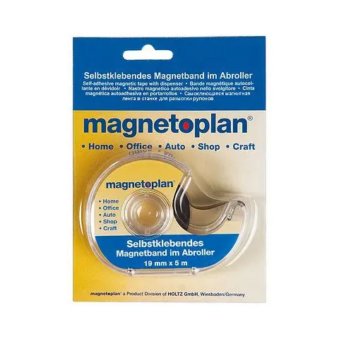 Magnetoplan Magnetband im Spender, selbstklebend, 15510, 4013695030043Magnetklebeband im SpenderPraktischer Handabroller mit 5 Meter Magnetklebeband, um rasch etwas. Magnethaftend. Zu anklemmen: Für Messebau, Schule, Büro oder im Privatbereich einsetzbar. Mit dem anwendernetten und funktionellen Spender lässt sich die gewünschte Länge beliebig trennen und rückseitig auf Papier, Karton, Fotos, Informationen etc. Aufkleben. Zur reinen, unsichtbaren und flexiblen Befestigung an eisenhantikigen Beschichtungn wie Schaukästen, Whiteboards, Metallschränken, Flipchart-Beschichtungn etc. Magnetklebeband 5 m x 19 mm. rückstandslos wiederablösbar .